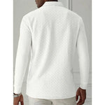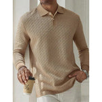 A refined long-sleeve polo shirt crafted from soft textured knit fabric. Designed with a classic collar and button placket, offering a comfortable fit ideal for both office and casual wear.