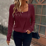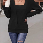 A sophisticated and versatile top featuring a square neckline, long sleeves, and a relaxed fit that flatters any silhouette. Designed for comfort and elegance, this chic blouse transitions effortlessly from office wear to casual outings. Its minimalist design makes it a timeless addition to your autumn wardrobe.