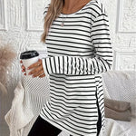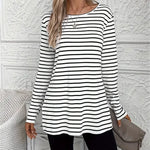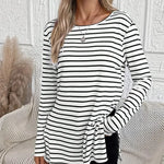 A timeless striped long sleeve crafted with a relaxed fit and soft stretch knit. Designed with a classic crew neckline and long sleeves, this piece brings effortless Parisian charm to everyday wear. Ideal for layering through spring and autumn.