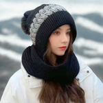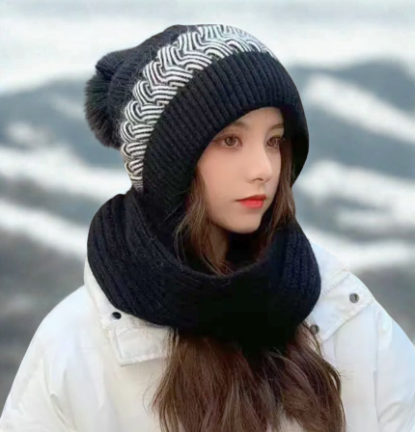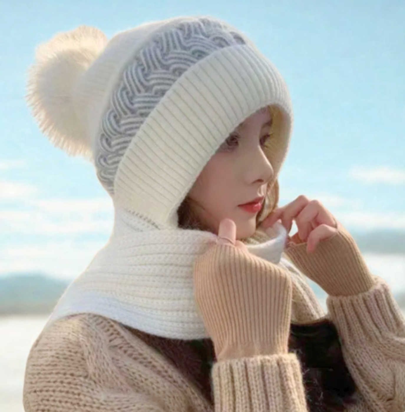 A soft, elegant winter essential that combines practicality with refined design. This knit hat and scarf set features a plush fleece lining for added warmth and a faux fur pom pom for a touch of sophistication. Its minimalist silhouette and cozy texture make it a perfect choice for cold weather days, adding effortless comfort to any outfit.