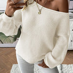 Wide Ribbed Off-Shoulder Knit Sweater