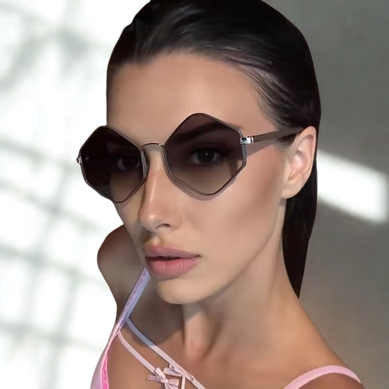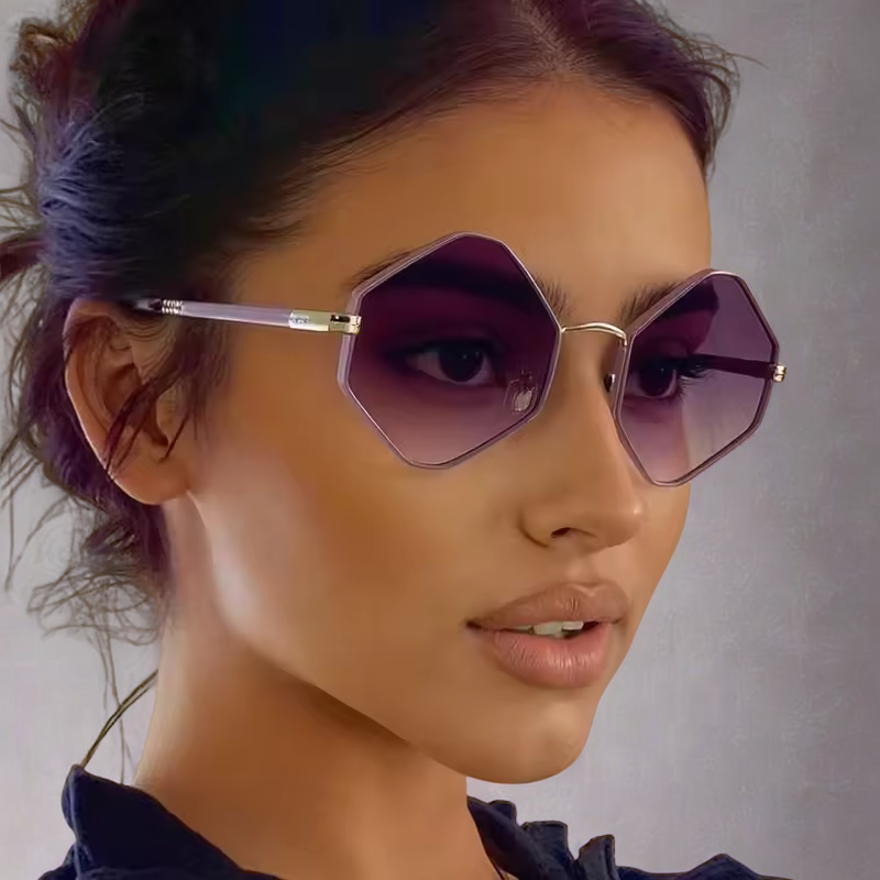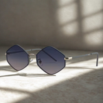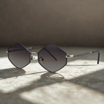 Geometric metal sunglasses with a bold hexagon silhouette and tinted UV400 lenses. Designed for a lightweight feel and modern edge that elevates any outfit.