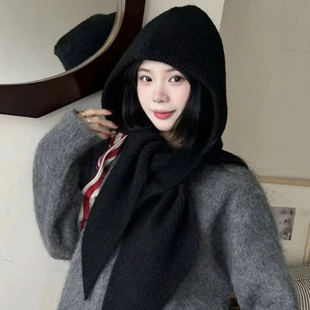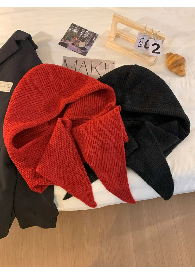 Soft ribbed knit balaclava designed for warmth and versatility. The hooded scarf silhouette adds a modern edge, perfect for layering in cold weather.