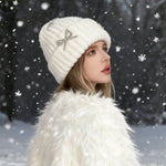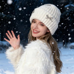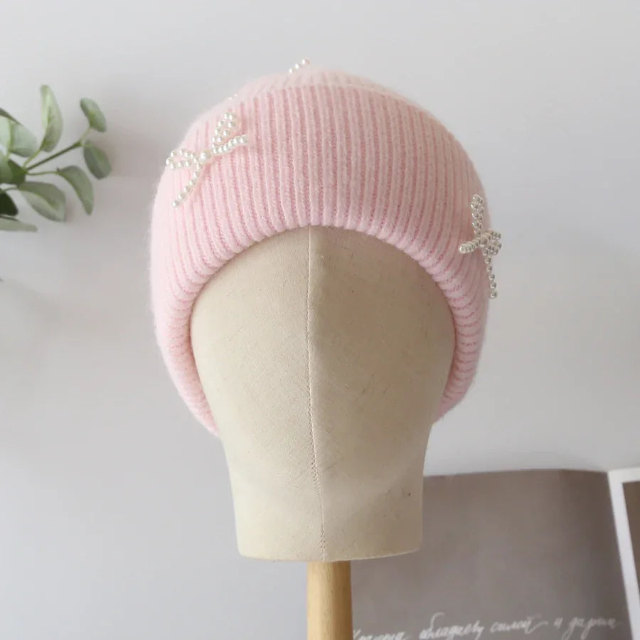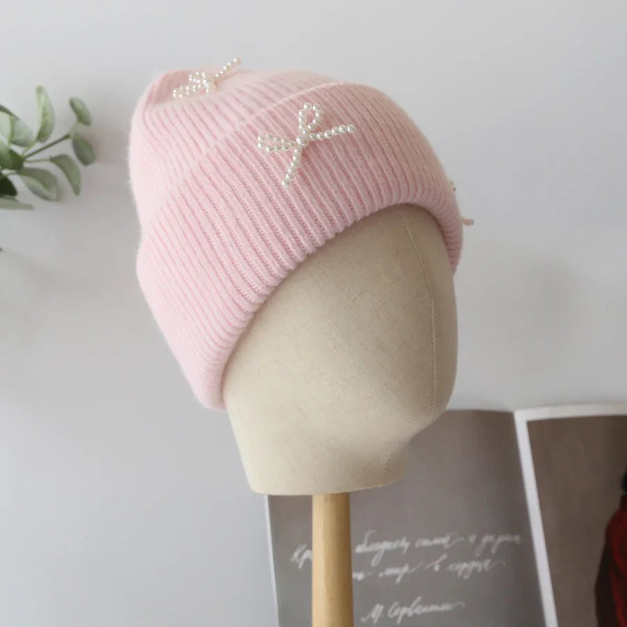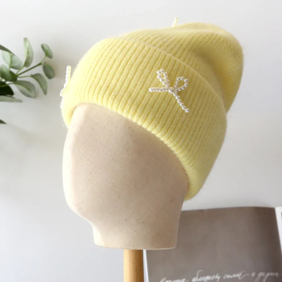A soft, feminine accent for winter days. This ribbed knit beanie is detailed with delicate pearl embellishments and a shimmering bow for subtle elegance. The plush fleece interior offers extra warmth, making it the perfect choice for cozy city strolls or weekend escapes.