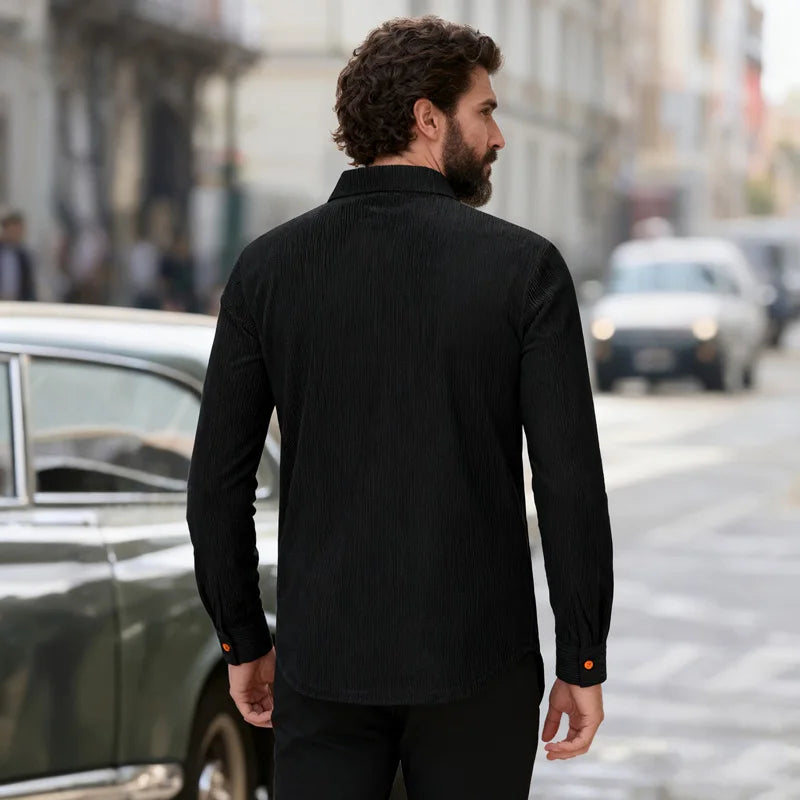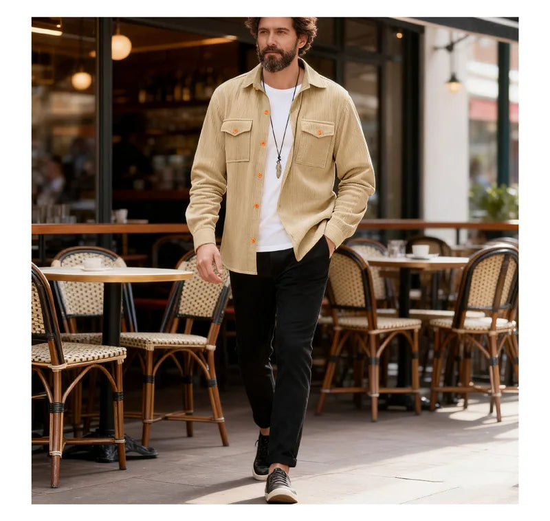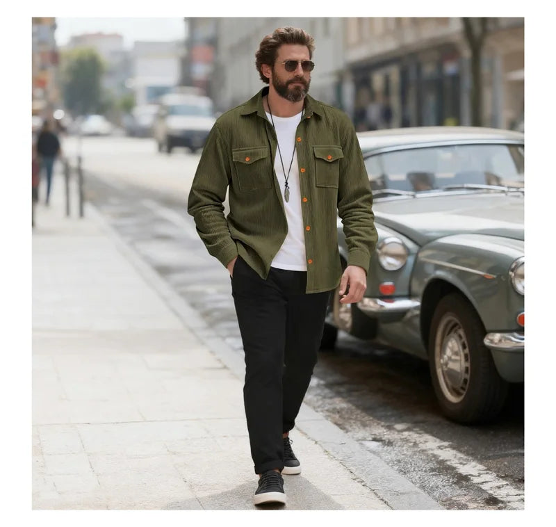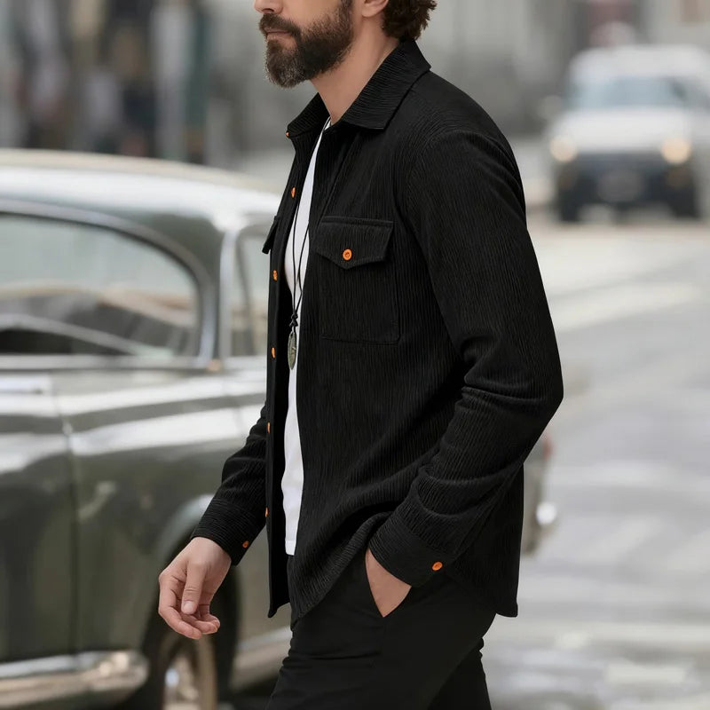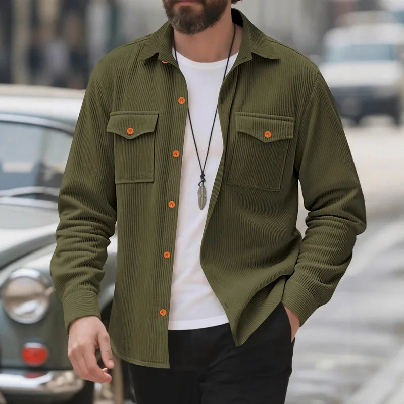 Soft corduroy polo with a relaxed fit and ribbed texture. Designed for comfort and versatility through cooler seasons.